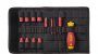 Набор slimVario® electric 43467 фирмы Wiha - практичный набор из 13 инструментов в удобной складной сумке. В комплект входит надежная отвертка SoftFinish electric, биты профиля шлиц, торцевые головки с внутренним шестигранником и два переходника, прошедшие испытания током. Инструменты подходят для работы деталями под напряжением до 1000 В. Сумка компактно складывается и отлично подходит для работы на выезде. Каждый инструмент надежно зафиксирован на своем месте и легко извлекается.